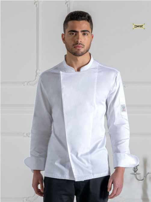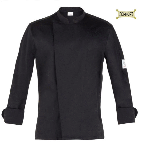 Bluza kucharska Augustin to topowy element kolekcji Essential, wykonana z elastycznej bawełny która ułatwia swobodę ruchów i jest miękka w dotyku. Ma dopasowany krój, charakteryzujący się dwoma wyprofilowanymi wycięciami na plecach. Kitel Augustin jest oferowany w kolorze czarnym i białym a jego kobiecym wariantem jest bluza kucharska damska Celine.