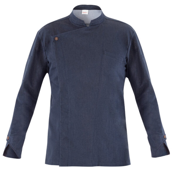 Bluza kucharska Eric w wersji blue jeans charakteryzuje się nowoczesnym stylem i krojem.