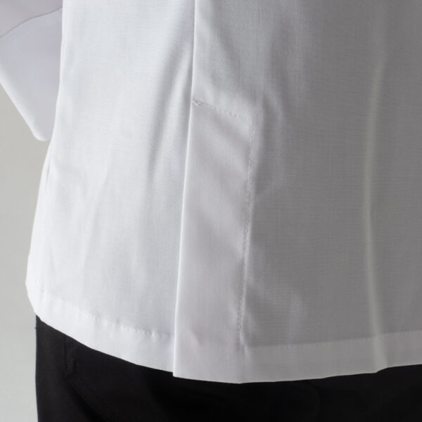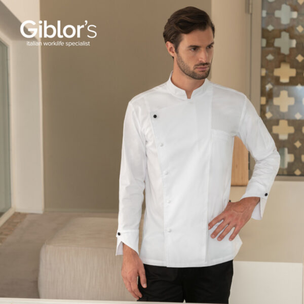 Bluza kucharska męska Riccardo to 100% Made in Italy. Elegancka i wyrafinowana pod względem stylu i materiałów. Doskonała jakość wykonania, dbałość o każdy szczegół oraz idealna tkanina TENCEL™ ze stretchem. Górny zatrzask oraz zatrzaski przy mankietach są wymienialne a w komplecie są trzy wersje. Jedna z wersji w jest z wyjątkowymi kryształami od Swarovskiego a pozostałe dwie wersje to zatrzaski powlekane materiałem w kolorze białym i czarnym.Krój szycia Slim Fit, zapięcie na zatrzaski, trzy komplety wymiennych zatrzasków, jedna kieszonka na lewej piersi, kieszonka na lewym rękawie na długopis i zakreślacz, dwa rozcięcia z tyłu bluzy.