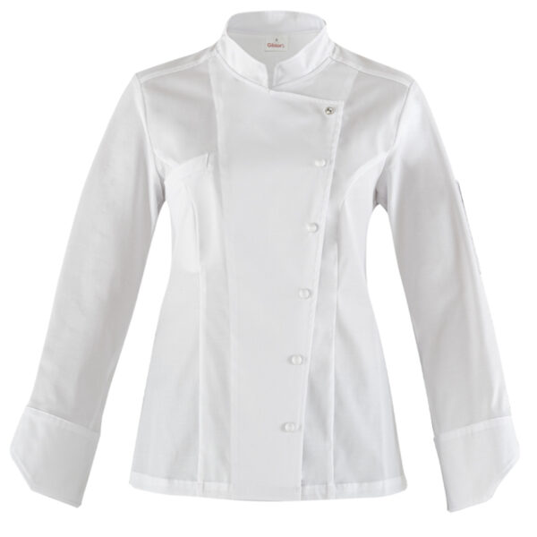 Bluza kucharska damska Sofia to 100% Made in Italy. Elegancka i wyrafinowana pod względem stylu i materiałów. Doskonała jakość wykonania, dbałość o każdy szczegół oraz idealna tkanina TENCEL™ ze stretchem. Górny zatrzask oraz zatrzaski przy mankietach są wymienialne a w komplecie są trzy wersje. Jedna z wersji w jest z wyjątkowymi kryształami od Swarovskiego a pozostałe dwie wersje to zatrzaski powlekale materiałem w kolorze białym i czarnym.