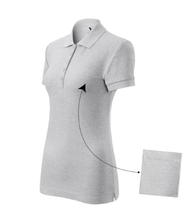dopasowany krój z rozporkami na końcach bocznych szwów, kołnierzyk oraz lamówka z dzianiny ściągaczowej 1:1, wąskie plisy z 5 guzikami w kolorze materiału, wewnętrzna część lamówki wykończona taśmą z tego samego materiału co koszulka, szew na ramionach wzmocniony taśmą, kieszonka pakowana osobna dla jej łatwiejszego znakowania