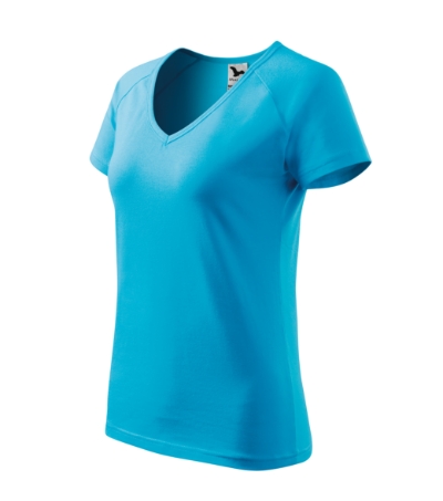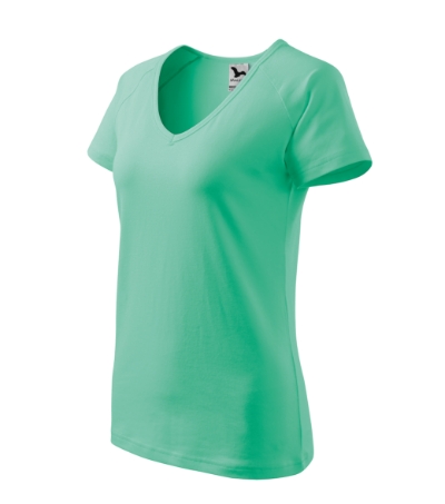elastyczny materiał utrzymujący kształt, krój slim-fit ze szwami bocznymi, dekolt w kształcie litery V, dekolt wykończony materiałem wierzchnim, krótkie rękawy raglanowe