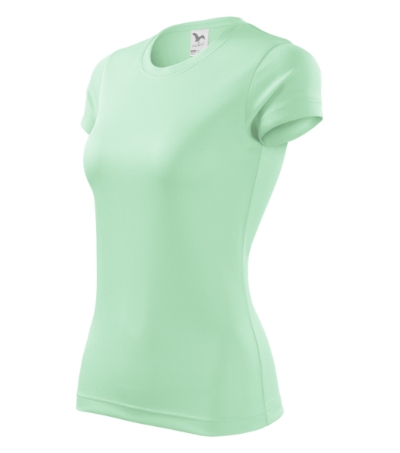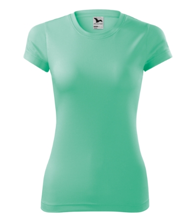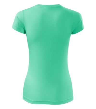szybkoschnący materiał, dopasowany krój ze szwami bocznymi, wąska lamówka z materiału wierzchniego, lamówka na karku wzmocniona taśmą z materiału wierzchniego, szew wzmacniający na ramionach, idealna do uprawiania sportu i aktywności fizycznej, materiał przystosowany do sublimacji (jasne kolory)