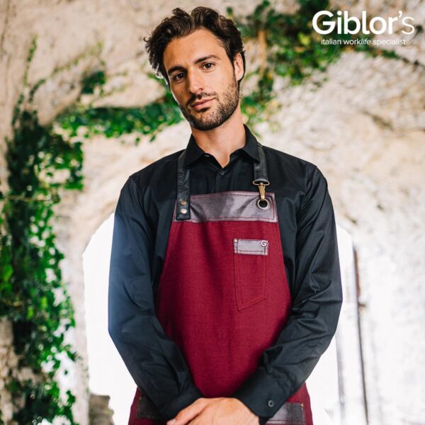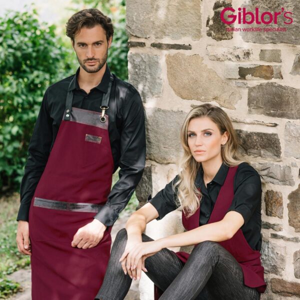 Fartuch Tropez to model wykonany jest w 100% z poliestru w połączeniu z dwoma różnymi rodzajami kontrastujących materiałów: imitacją skóry na karku i bocznych sznurowadłach oraz dopasowaną tkaniną alcantara do wykończenia śliniaczka, uchwytu na długopis i środkowej kieszeni. Posiada regulowane sznurowanie, które charakteryzuje postarzany mosiężny żagiel i pasujący haczyk, kieszenie i sznurowadła zapinane na rygle i kontrastowe podwójne szwy. Tropez jest dostępny w kolorze jasnoszarym, beżowym, brązowym oraz w nowym wariancie bordowym.