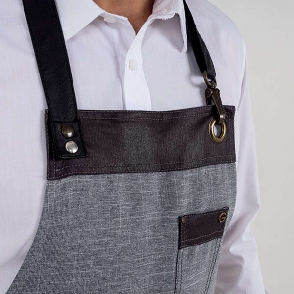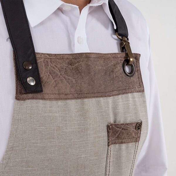 Fartuch Tropez to model wykonany jest w 100% z poliestru w połączeniu z dwoma różnymi rodzajami kontrastujących materiałów: imitacją skóry na karku i bocznych sznurowadłach oraz dopasowaną tkaniną alcantara do wykończenia śliniaczka, uchwytu na długopis i środkowej kieszeni. Posiada regulowane sznurowanie, które charakteryzuje postarzany mosiężny żagiel i pasujący haczyk, kieszenie i sznurowadła zapinane na rygle i kontrastowe podwójne szwy. Tropez jest dostępny w kolorze jasnoszarym, beżowym, brązowym oraz w nowym wariancie bordowym.