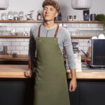 wymiary: 70 x 85 cm (szerokość x długość) splot diagonalny, 65% poliester / 35% bawełna, 215g/m² – trwały kolor, łatwa pielęgnacja – fartuch na szelkach z odpinanymi, kontrastowymi kolorowymi paskami – modne połączenie elegancji z modnym stylem streetwear – kontrastowe ramiączka o naturalnym wyglądzie – wszystkie wstążki można szybko i łatwo zdejmować za pomocą zatrszasków – obie wstążki fartucha na ramionach odciążające szyję – funkcjonalne zapięcie: wystarczy skrzyżować kontrastowe paski z tyłu, przeciągnąć je przez klamry, a następnie związać (elastyczna regulacja długości i wysokości) – nowoczesne, stopniowane krawędzie na końcach fartucha – pętelka na długopis po prawej stronie piersi – lewa kieszeń (19 x 21 cm) z kontrastową kolorową pętelką do mocowania długopisów, ścierek do naczyń lub innych przyborów kuchennych