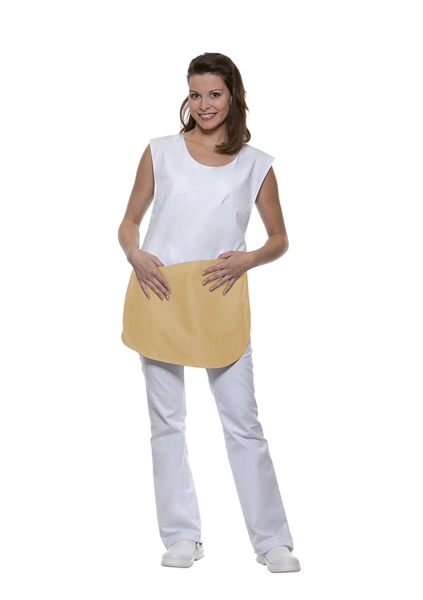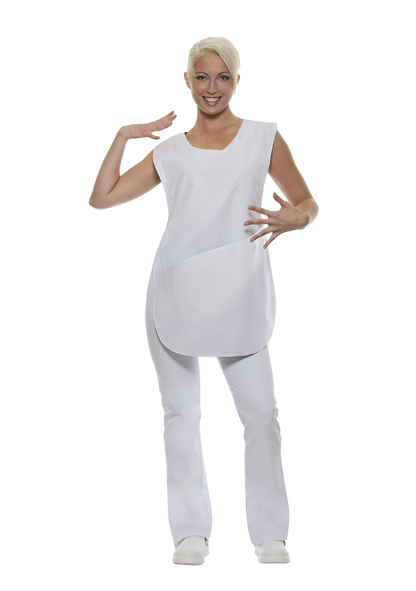 splot diagonalny, 215 g/m² – wysoka jakość, wstępnie wykurczona, trwały kolor, łatwa pielęgnacja – fartuch roboczy dla pań z naszywkami na piersi -1 ukryta kieszeń na szwie – paski do wiązania bocznego – długość pleców dla rozmiaru I ok. 83 cm – nadaje się do prania przemysłowego