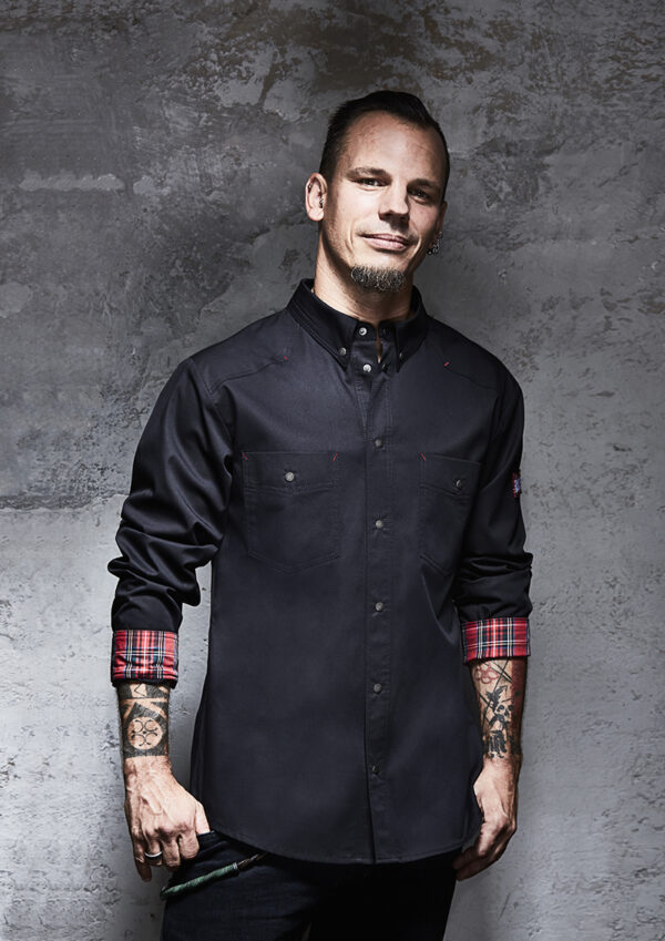 Koszula kucharska w unikalnym stylu ROCK CHEF® z wieloma aplikacjami