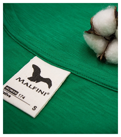 certyfikowana bawełna organiczna, dzianina slub o nieregularnej strukturze, dopasowany krój ze szwami bocznymi, wąska lamówka z materiału wierzchniego z dodatkiem 5 % elastanu, lamówka na karku wzmocniona taśmą z materiału wierzchniego, szew wzmacniający na ramionach, więcej o standardzie GOTS