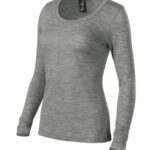 prążki w kombinacji kolorów biały i granatowy, elastyczna tkanina utrzymująca kształt, lamówka dekoltu wykonana z dzianiny ściągaczowej 1:1 z dodatkiem 5 % elastanu, lamówka na karku wzmocniona taśmą z materiału wierzchniego, szew wzmacniający na ramionach, długie rękawy