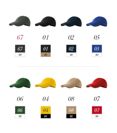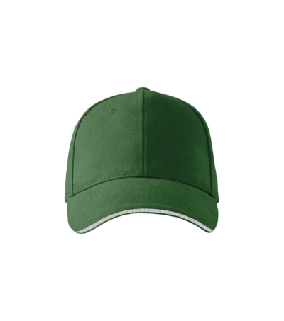 krój sześciopanelowy, połączone 2 panele przednie, wyszywany, lekko zakrzywiony daszek z kontrastowym paskiem, haftowane otwory wentylacyjne, opaska pochłaniająca pot, rozmiar regulowany za pomocą mosiężnego klipsa