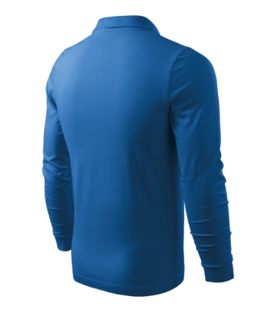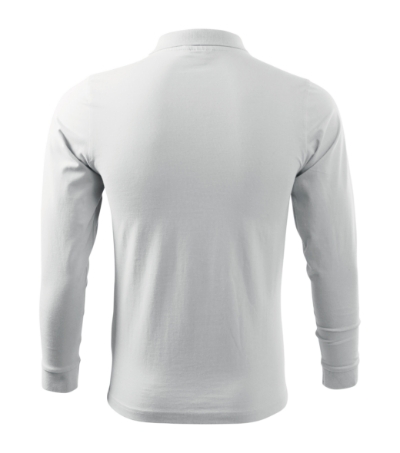 krój z bocznymi szwami, kołnierzyk i mankiety rękawów z dzianiny ściągaczowej 1:1, plisy z 2 guzikami w kolorze materiału, wewnętrzna część lamówki wykończona taśmą z tego samego materiału co koszulka, szew na ramionach wzmocniony taśmą, długie rękawy zakończone mankietami