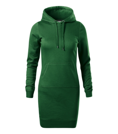 dopasowany krój ze szwami bocznymi, długość powyżej kolan, kaptur z podszewką ściągany za pomocą sznurka, wewnetrzna tylna część lamówki wzmocniana taśmą w kolorze 94, dolny ściągacz i mankiety rękawów z dzianiny ściągaczowej 1:1 z dodatkiem 5 % elastanu, kieszeń typu kangurka, nieczesana strona wewnętrzna