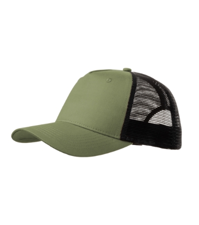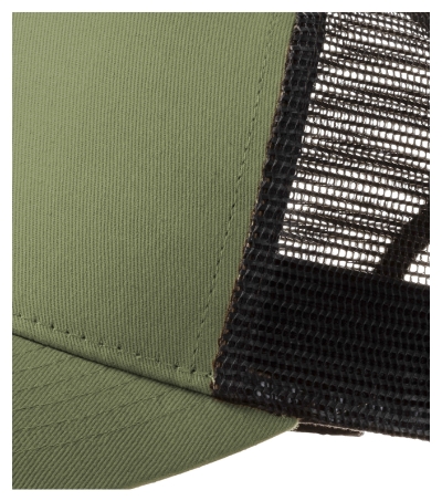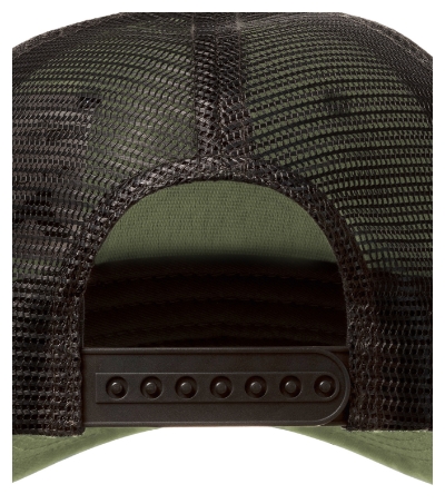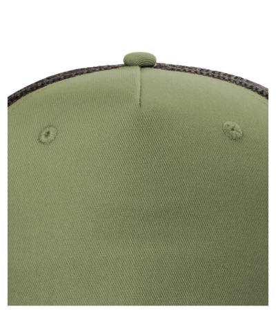 krój pięciopanelowy, klejony panel przedni, oddychająca siateczka w tylnej części, wyszywany, lekko zakrzywiony daszek, haftowane otwory wentylacyjne, opaska pochłaniająca pot, snapback – rozmiar regulowany plastikowymi paskami