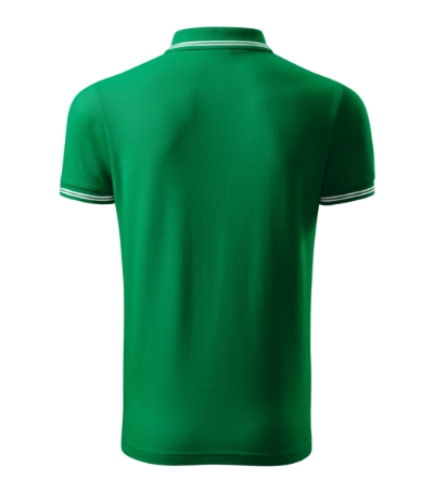 krój z bocznymi szwami, kołnierzyk i mankiety z dzianiny ściągaczowej 1:1 z kontrastowym paskiem, plisy z 3 guzikami w kolorze materiału, wewnętrzna część lamówki wykończona taśmą z tego samego materiału co koszulka, szew na ramionach wzmocniony taśmą